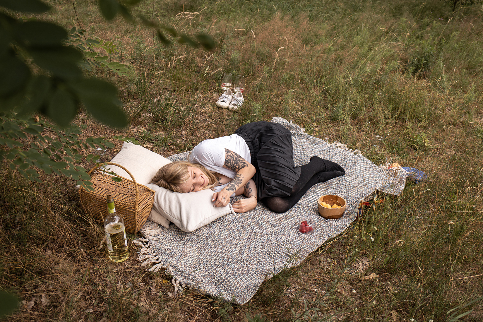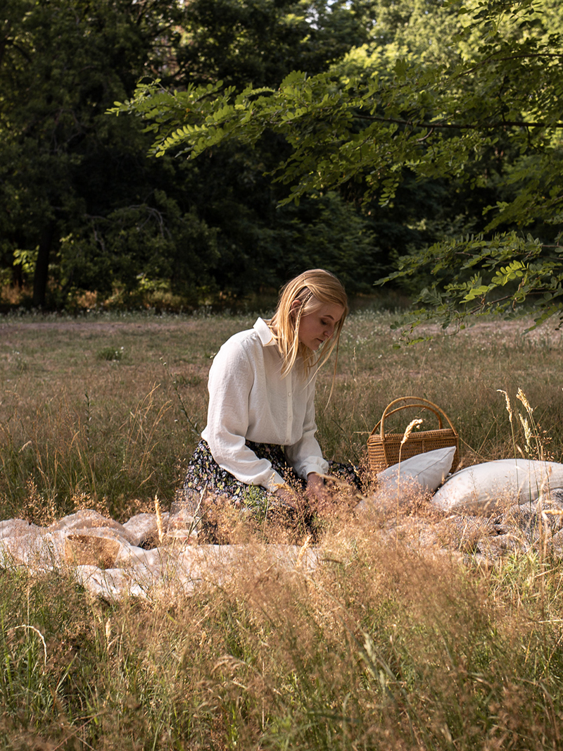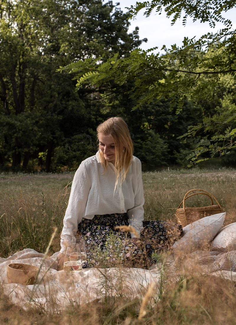 Decken und Kissen im Rucksack verstaut und auf ins Grüne. Mit dem Fahrrad durch Köpenick sind wir zu einer kleinen Waldlichtung am See gefahren. Dort haben meine Freundin und ich es uns gemütlich gemacht mit ein wenig Obst und einem Gläs´chen Weinschorle. Es war der perfekte Feierabend. Nachdem wir erst überlegt hatten, ob es sich lohnt auch bei kühlerem Wetter ein Picknick zu machen, waren wir sehr froh, dass wir uns doch noch aufgerafft haben. Mit Pulli und Kuscheldecke war es einfach so gemütlich. Wir saßen bestimmt drei Stunden auf der Wiese bis die Dämmerung einbrach und wir uns wieder auf den Rückweg machten.
